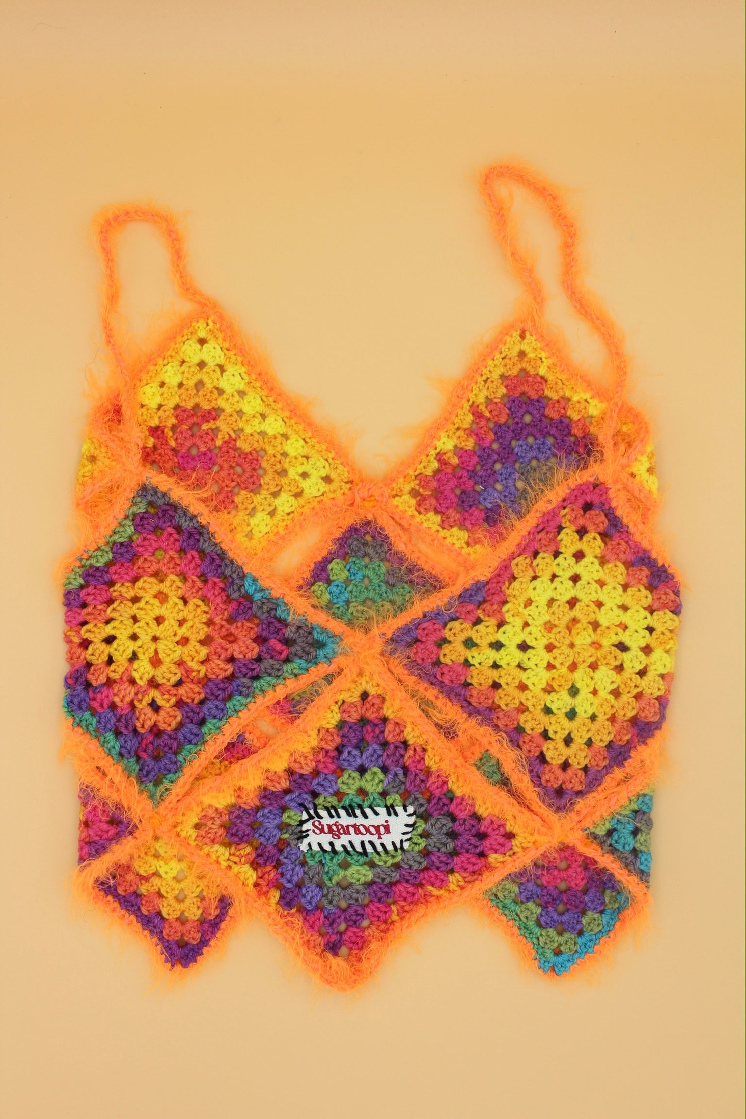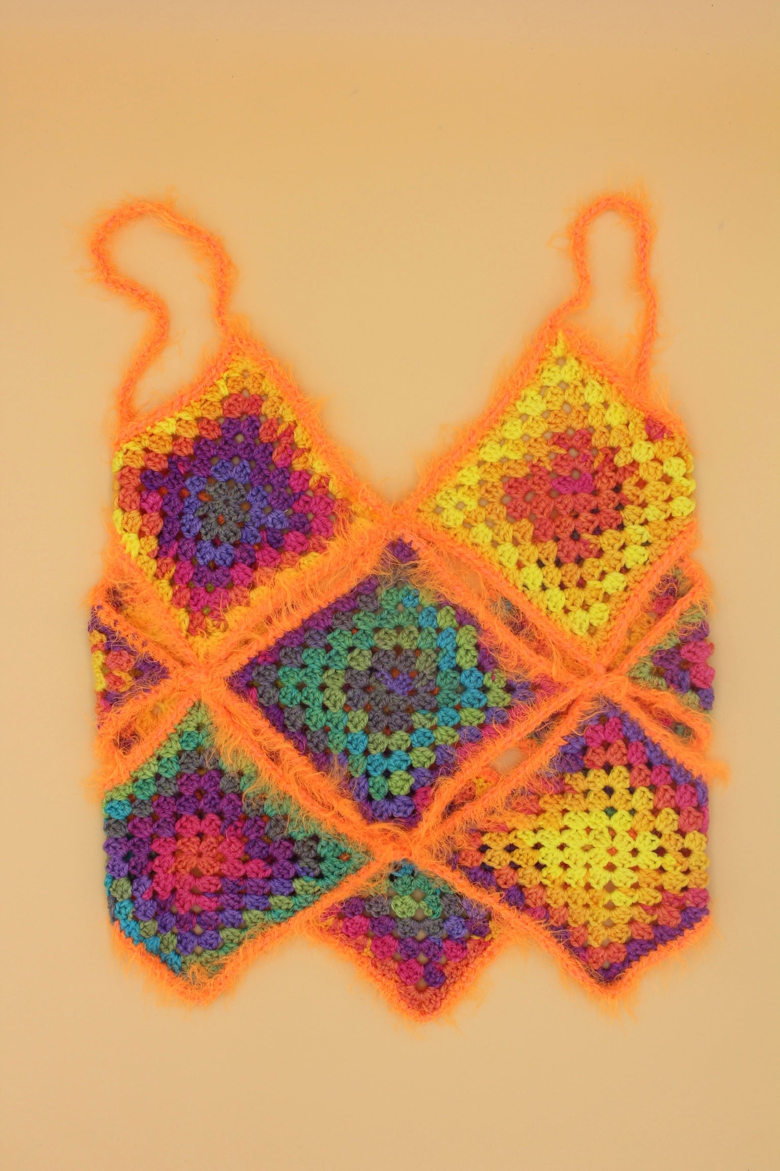 Top de colores hermoso hecho con estambre de mohair y acrílico. Talla chica/mediana.