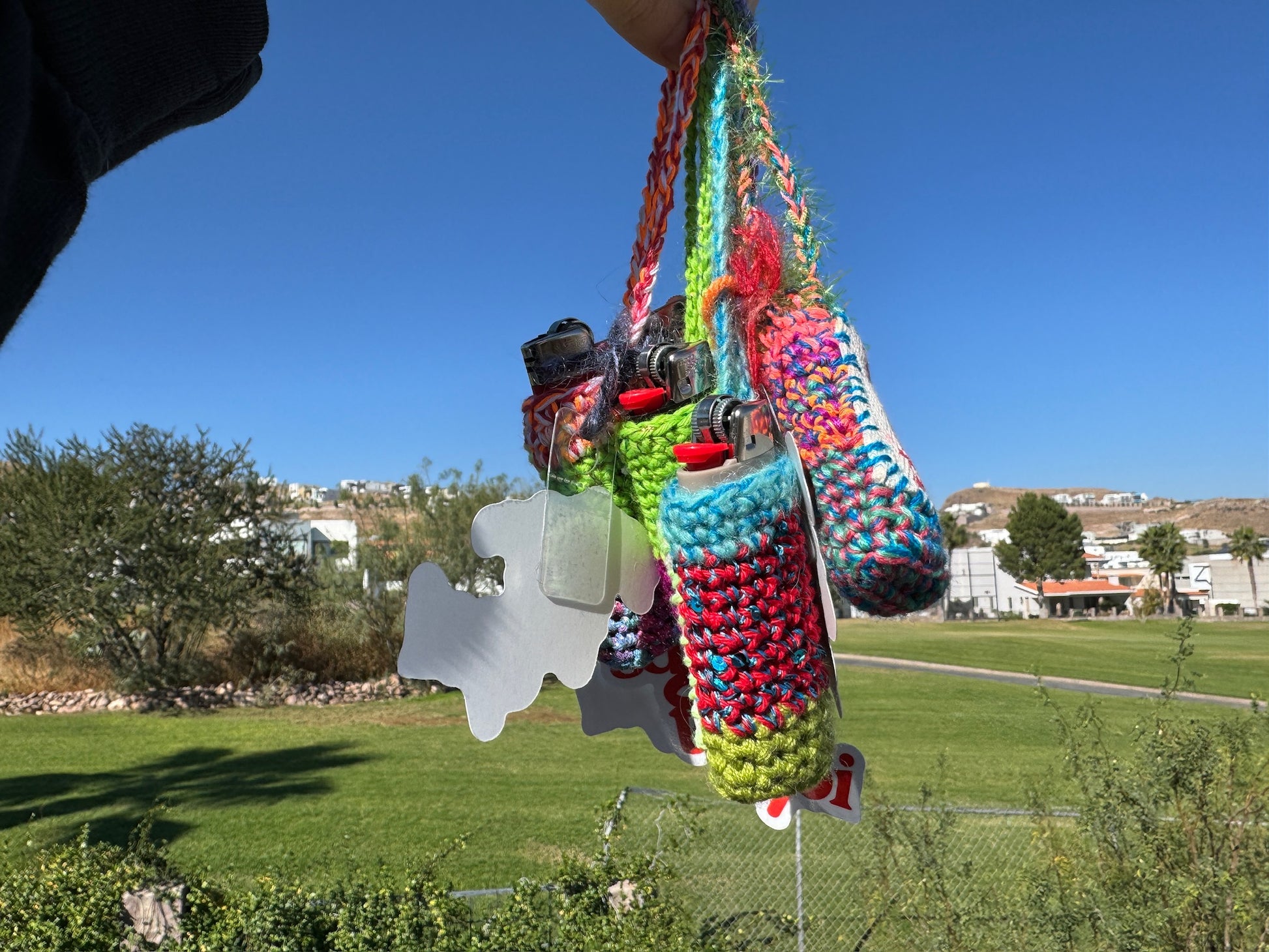 Porta encendedor con encendedor incluido.